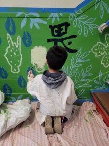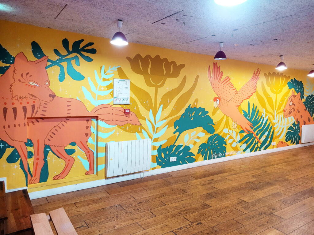 Je les accompagne tout au long de la création de la fresque murale en leur faisant découvrir les différentes étapes de la réalisation, de la recherche d’inspiration à la peinture, en passant par la création du croquis.